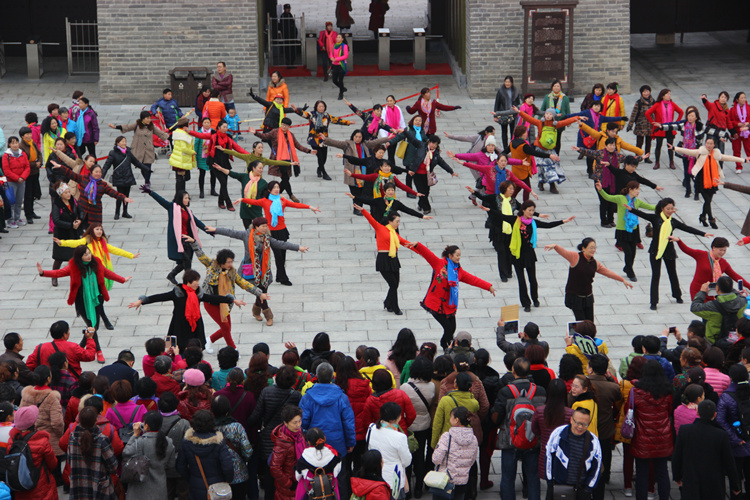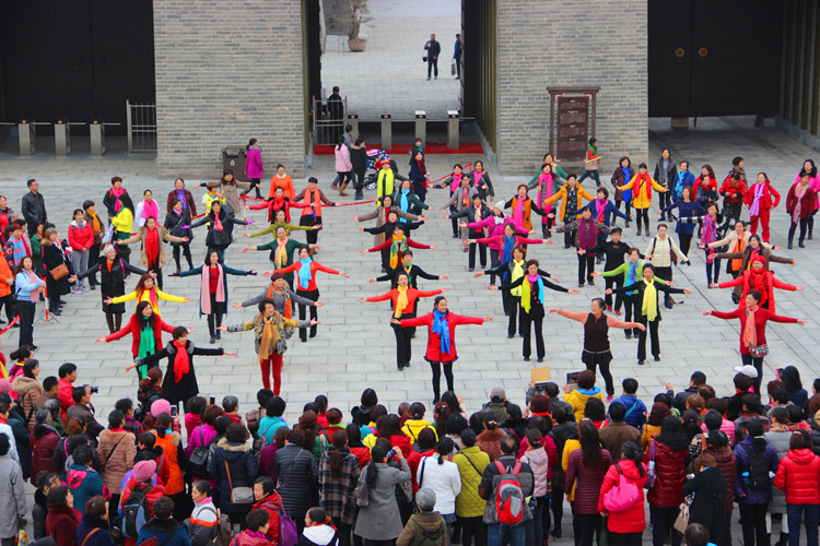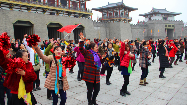 下午,十堰广场舞协会走进中国唐城,现场气氛火爆,五百多名广场舞协会会员随着音乐的旋律跳起广场舞,吸引了上千名游客的围观。