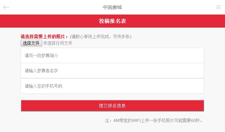 填写基本信息后,提交信息即可参与到我们的线上互动。点赞排名靠前的10名游客将免费获得中国唐城景区门票一张。